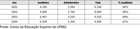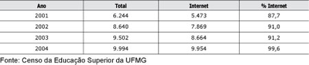 Tabela 40 Rede de computadores da UFMG conforme acesso à internet – 2001-2004.