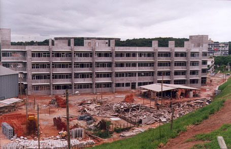 do Bloco 2 já em fase adiantada de alvenarias, com as esquadrias de alumínio todas instaladas em cobertura também totalmente concluída.