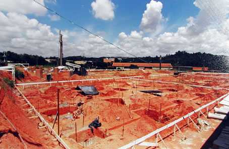 fundo, a área onde está em construção