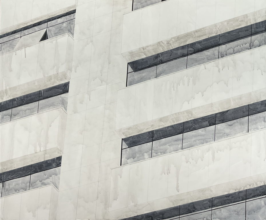 A pesquisa nasce a partir de uma observação da cidade de Belo Horizonte, onde a artista reside desde 2019. Em contato com o centro urbano, emerge o desejo de representar esse ambiente austero e ermo. Como nos fala Didi-Huberman em O Que Vemos, O Que Nos Olha, “devemos fechar os olhos quando o ato de ver nos remete, nos abre a um vazio que nos olha, nos concerne e, em certo sentido nos constitui.” As obras convidam o espectador a observar esse vazio que nos encara e que nos atravessa intensamente.