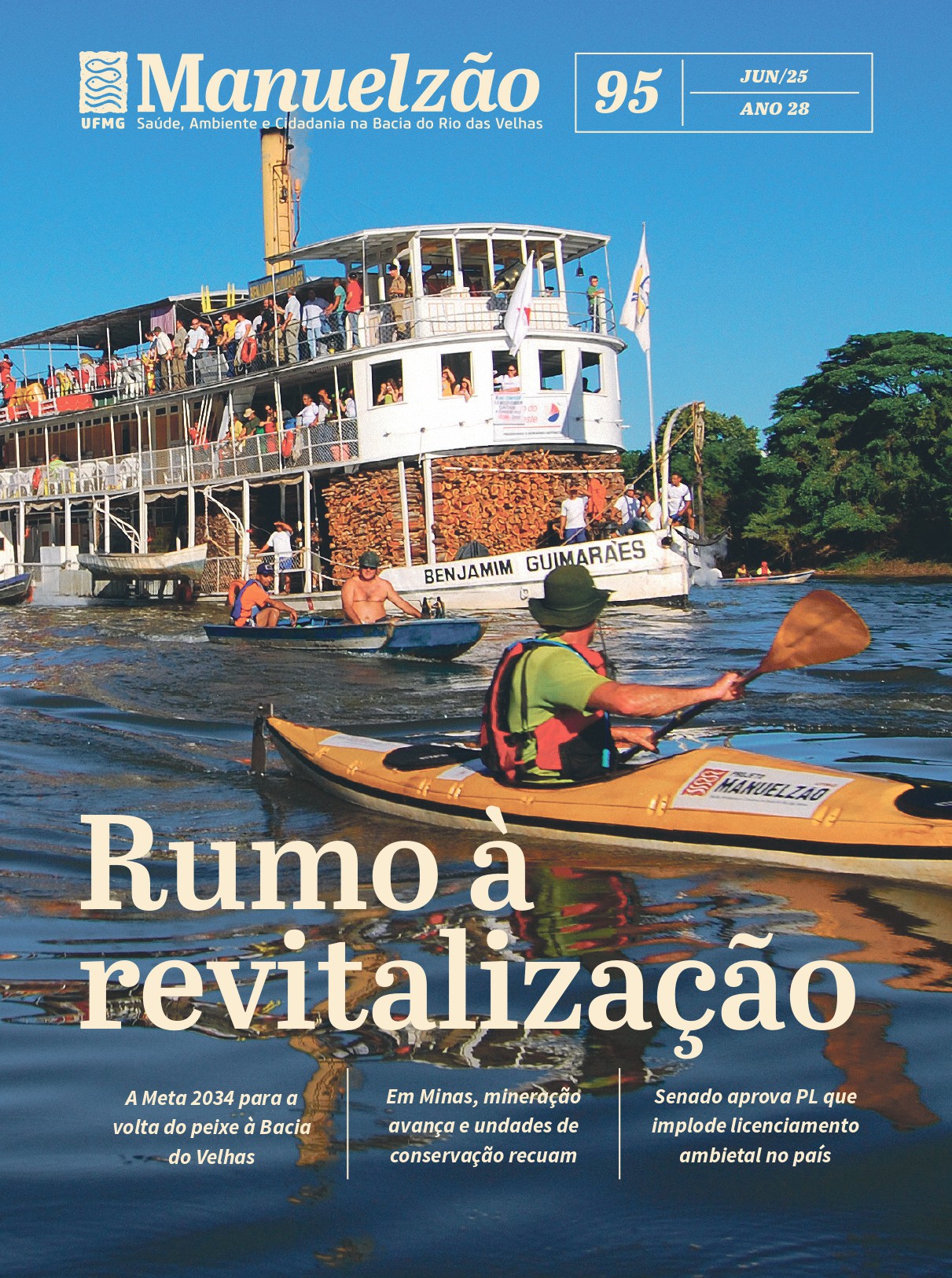 O Projeto Manuelzão lançou nesta quarta-feira, dia 25 de junho, uma nova edição da Revista Manuelzão, publicação produzida pela equipe de comunicação do projeto de extensão da Faculdade de Medicina da UFMG. O número 95 da revista, intitulado Rumo à Revitalização, apresenta a Meta 2034 para a renaturalização da bacia do Rio das Velhas, rio que abastece 70% da população de Belo Horizonte e 40% da Grande BH, e reúne reportagens, artigos e análises sobre a gestão das águas e a política ambiental em Minas e no Brasil. A edição está disponível nas versões digital e impressa, com distribuição gratuita.