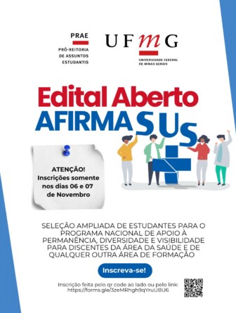 A Pró-reitoria de Assuntos Estudantis (Prae) da UFMG abriu seleção ampliada para recrutar profissionais e estudantes para o Programa Nacional de Apoio à Permanência, Diversidade e Visibilidade para Discentes na Área da Saúde, o AfirmaSUS.