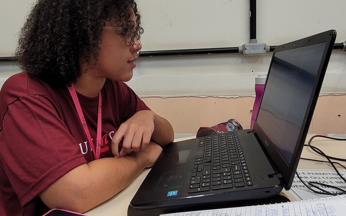 “Na biblioteca da EEFFTO, como tínhamos que conversar baixinho, era momento para fazer resumos, aprofundar em uma matéria ou aprender a usar ferramentas como Word e Powerpoint para apresentar trabalhos. Lá também fazíamos pesquisa em livros e explorávamos os recursos da biblioteca”, conta Eduarda Souza, a estudante parceira.