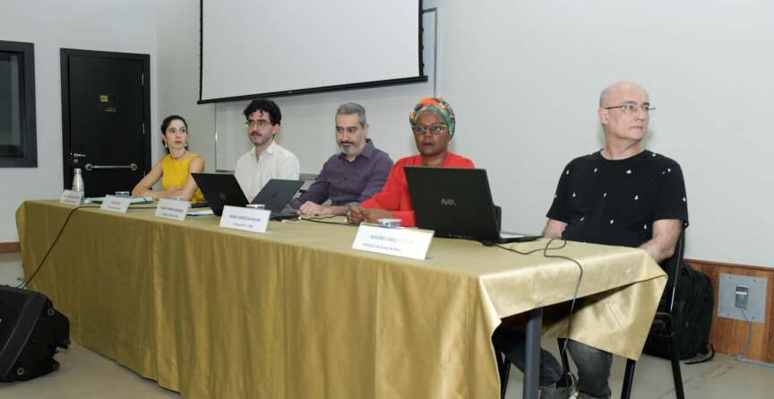 Mediada por Ricardo Fabrino Mendonça, professor do Departamento de Ciência Política e presidente da Comissão, a mesa reuniu docentes de diferentes áreas que têm investigado, sob distintas abordagens, a presença crescente da IA em processos artísticos, formativos e culturais.