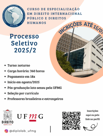 Até 15 de julho: prorrogadas inscrições para especialização em Direito Internacional Público e Direitos Humanos