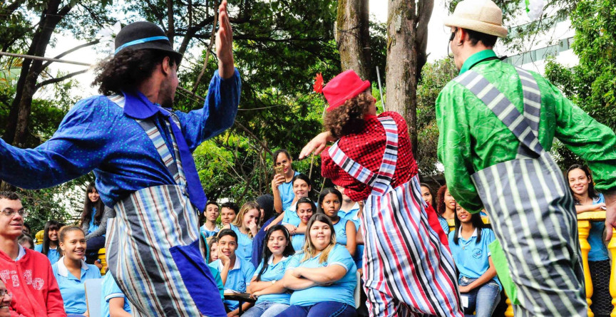 Apresentação da trupe ‘A torto e a direito’, vertente teatral do Polos de Cidadania
