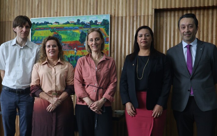 Representantes da Associação Internacional das Universidades (IAU), que reúne 526 instituições de 120 países, visitaram a UFMG nesta sexta-feira, dia 25. No período da manhã, a secretária-geral, Hilligje van’t Land, e o gerente de internacionalização, Giorgio Marioni, foram recebidos pela reitora Sandra Regina Goulart Almeida, pela diretora adjunta de Relações Internacionais, Barbara Orfanó, e pelo diretor do Escritório de Governança de Dados Institucionais, Dawisson Belém Lopes. No período da tarde, eles estiveram na Pró-reitoria de Pesquisa.