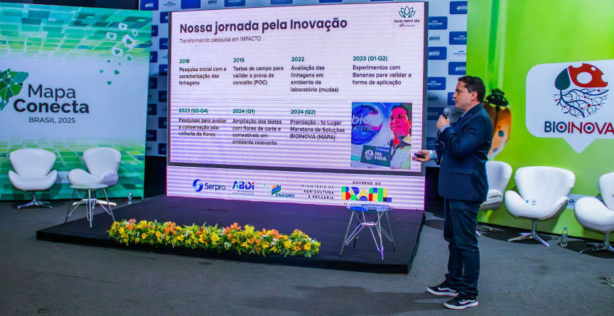 Iniciativa foi apresentada durante o MAPA Conecta Brasil 2025, realizado pelo Ministério da Agricultura e Pecuária; bioinsumo desenvolvido na startup aumenta validade de flores e frutos