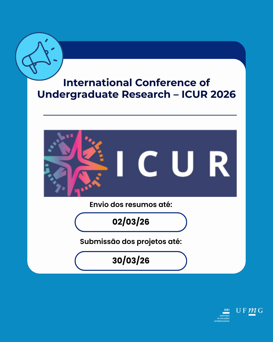 Participe da International Conference of Undergraduate Research – ICUR 2026