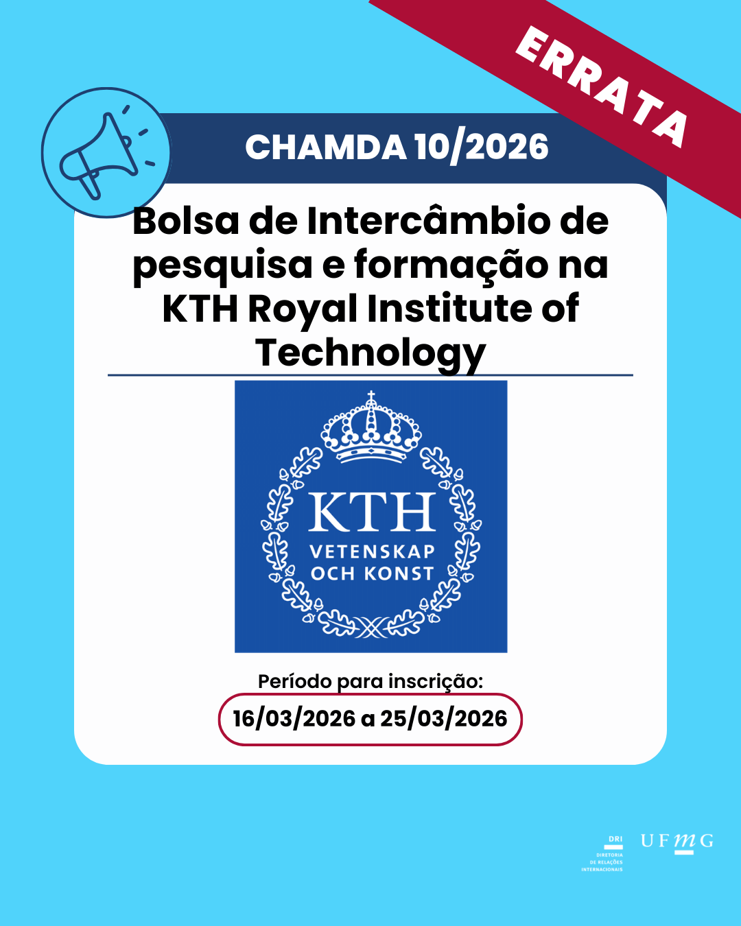Errata 01- Intercâmbio de Pesquisa e Formação na KTH Royal Institute of Technology, Suécia – CHAMADA Nº 10/2026