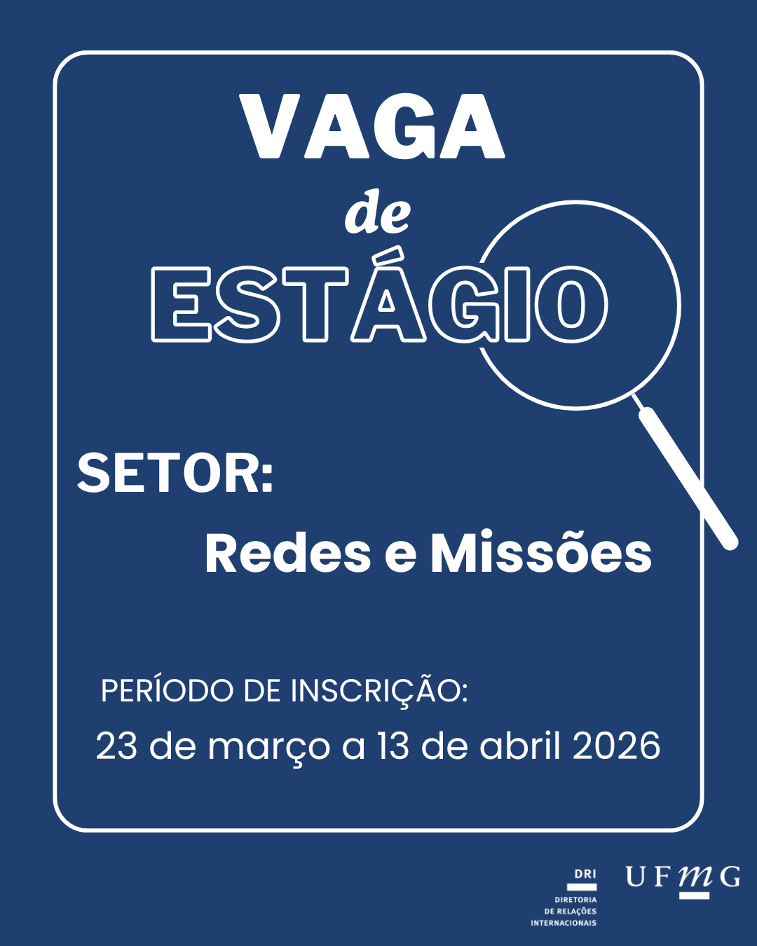 Seleção de estagiário para atuar no setor Redes e Missões da DRI