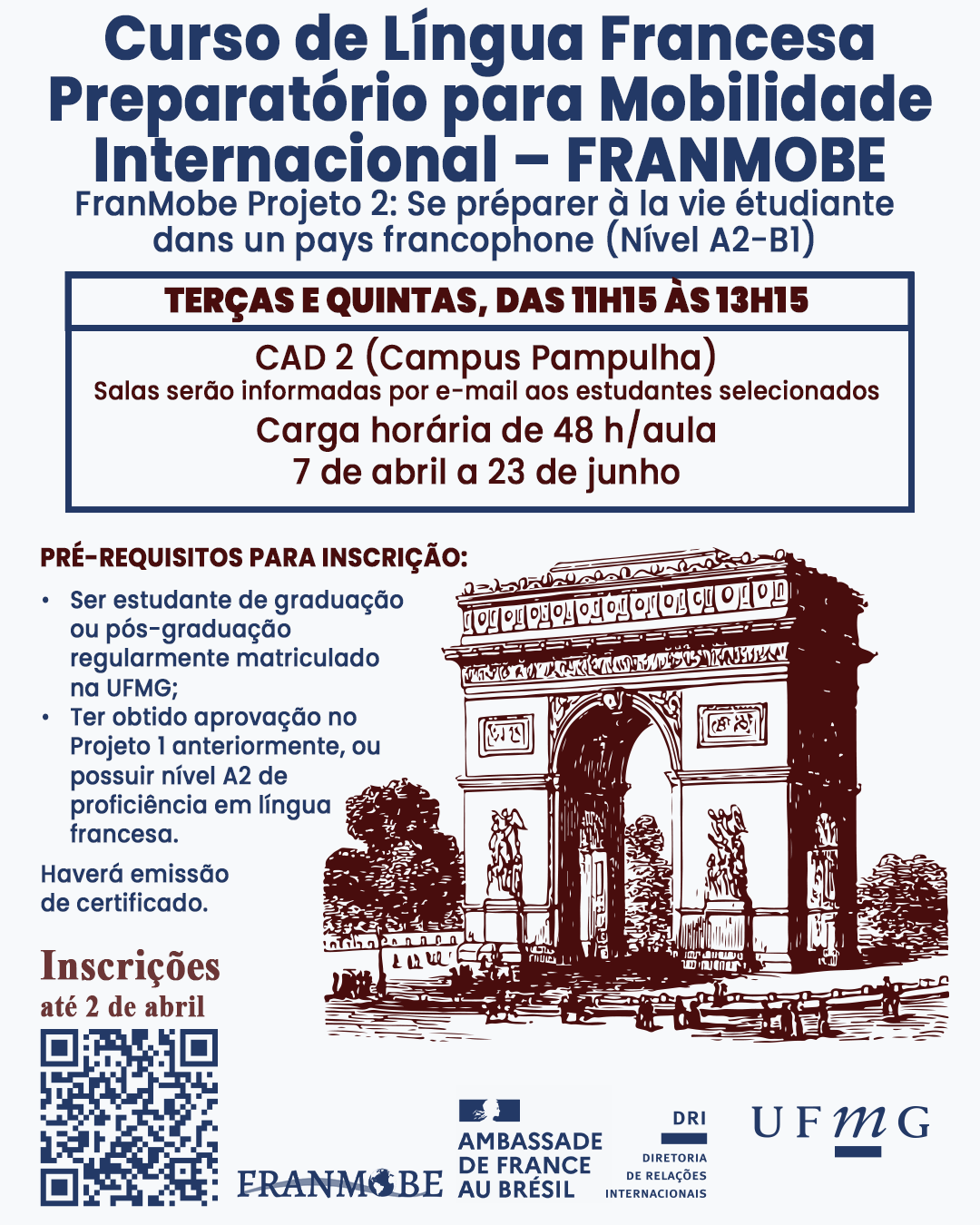 Abertas inscrições para curso de Língua Francesa Preparatório para Mobilidade Internacional – FRANMOBE
