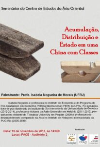 “Acumulação, Distribuição e Estado em uma China com Classes” – Profa. Isabela Nogueira de Morais (IE-UFRJ). Data: 19 de novembro de 2015 Local: FACE / UFMG