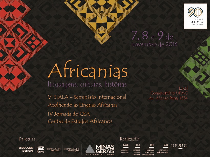 Acontece nos dias 7, 8 e 9 de novembro no Conservatório UFMG, o evento Africanias – linguagens, culturas, histórias, que englobará o VI SIALA – Seminário Internacional Acolhendo as Línguas Africanas e a IV Jornada do Centro de Estudos Africanos da UFMG.