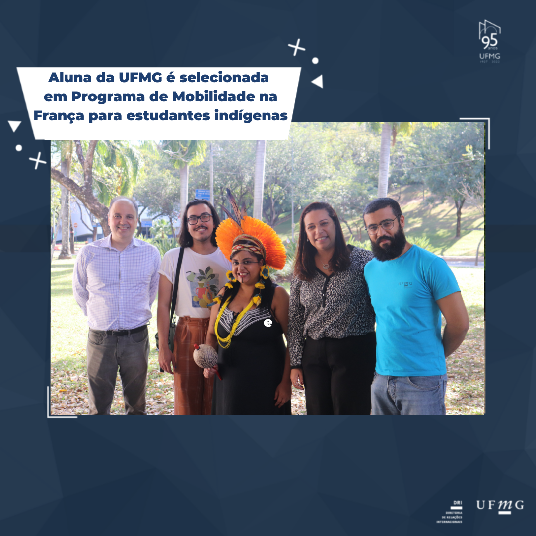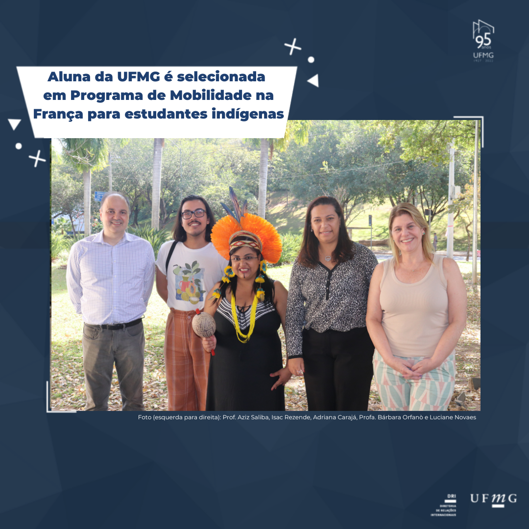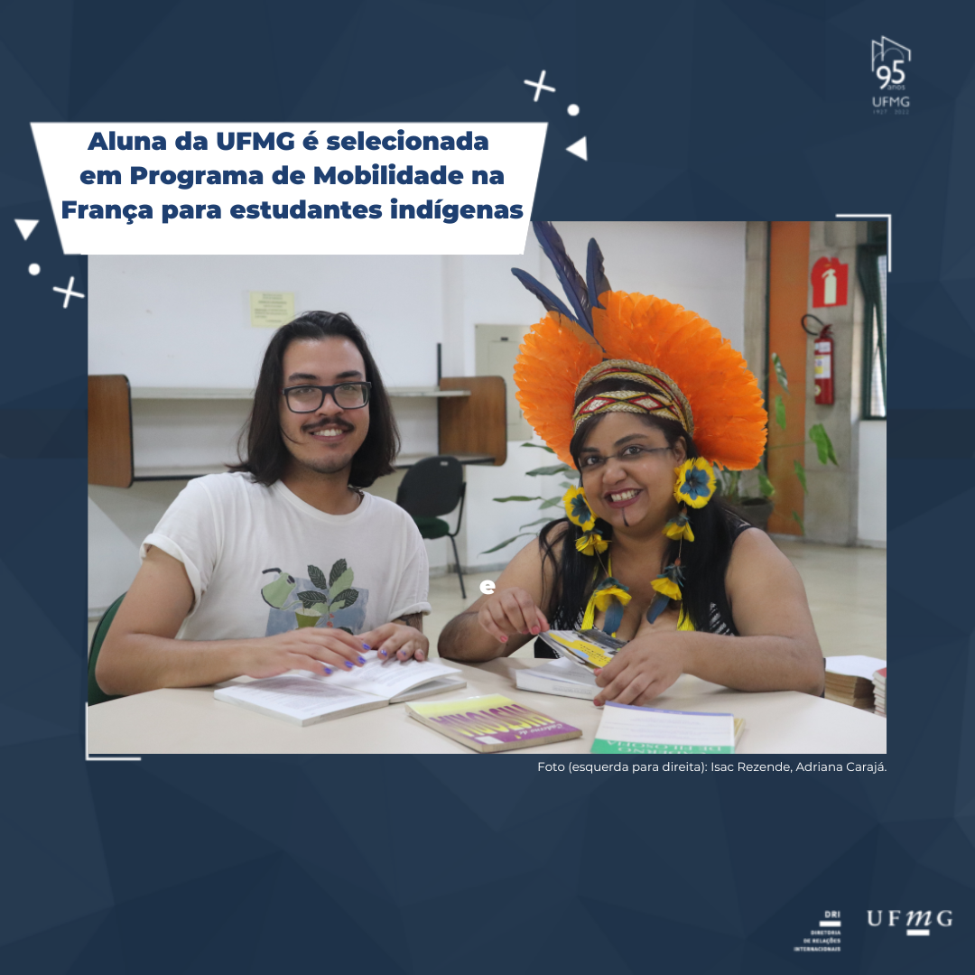 Hoje, dia 09 de agosto, a Organização das Nações Unidas (ONU) instituiu o Dia Internacional dos Povos Indígenas, intuindo trazer visibilidade para todas as populações originárias. Neste dia, é com grande alegria que a Diretoria de Relações Internacionais (DRI) da UFMG divulga a conquista de Adriana Fernandes Carajá, de nome indígena Korã,  doutoranda em Antropologia Social no Programa de Pós-Graduação em Arqueologia e Antropologia da UFMG (PPGAN).  Com tese intitulada “Bate Folhas: presença das Caboclas e dos Caboclos em manifestações religiosas do município de Jequié-BA”, Carajá foi a única aluna da UFMG selecionada para um intercâmbio na França pelo Programa de Mobilidade “Bolsa Guatá”, exclusivo para estudantes indígenas que estejam na pós-graduação de cinco IES brasileiras.