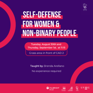 Na próxima terça-feira, dia 30 de agosto de 2022, Brenda Arellano, assistente de ensino de língua inglesa Fulbright (English Teaching Assistants – ETAs), dá continuidade às aulas de defesa pessoal, direcionadas a mulheres e pessoas não binárias da comunidade. Neste primeiro encontro do 2º semestre letivo, Brenda irá ensinar aos participantes sobre “Kimura sweeps”.