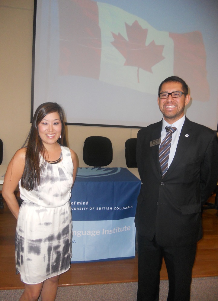 Danny Freire, da University of Saskatchewan e Maki Natori, da University of British Columbia, situadas respectivamente nas cidades de Saskatoon e Vancouver, falaram sobre o Canadá e sobre suas instituições, que tradicionalmente recebem alunos de todas as partes do mundo. Falaram também de oportunidades de cursos de inglês coordenados pelas universidades, inclusive de Inglês Acadêmico. Em seguida, foi aberto um espaço para esclarecimento de dúvidas.