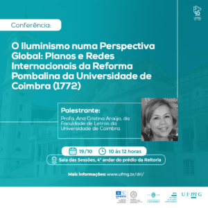 Na quarta-feira, dia 19 de outubro, a professora da Faculdade de Letras da Universidade de Coimbra, Ana Cristina Araújo, conduzirá conferência com o tema “O Iluminismo numa Perspectiva Global: Planos e Redes Internacionais da Reforma Pombalina da Universidade de Coimbra (1772)”.