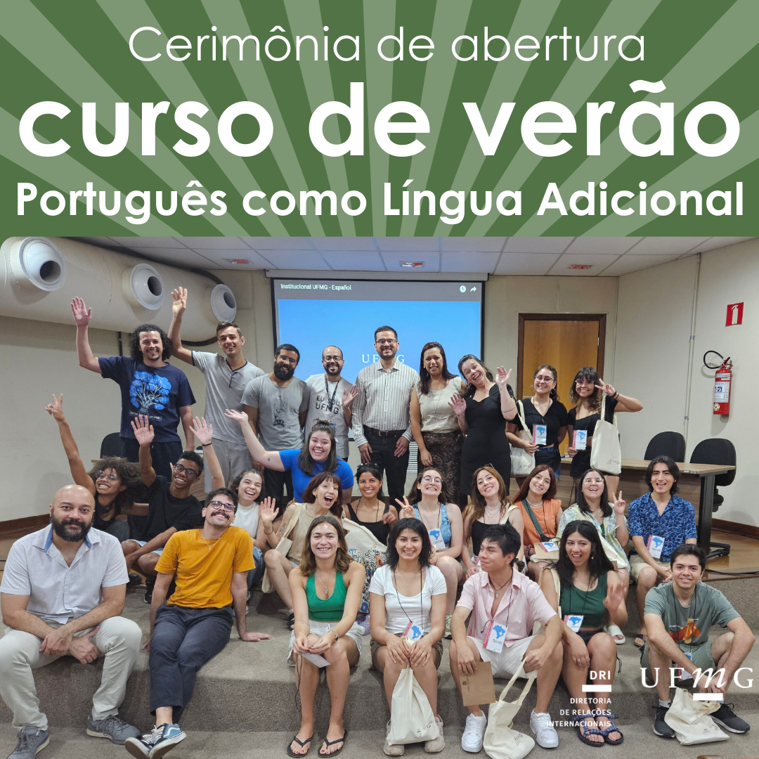 Aconteceu nesta segunda-feira, dia  22 de janeiro, às 8h, a Cerimônia de abertura do Curso de Verão de Português como Língua Adicional (PLA), que contou com a presença da Diretora-adjunta de Relações Internacionais (DRI), professora Bárbara Malveiro Orfanò;   do organizador do evento Marcos Araújo, do setor de Proficiência  da DRI; além da equipe da DRI: Luciana Fiuza, Ricardo Bruno, Lívia e João Guimarães; dos professores do PLA: Thiago Braga e  Samuel Martins; e da participação online do coordenador da disciplina  PLA, professor Henrique Leroy da Faculdade de Letras (FALE) da UFMG.