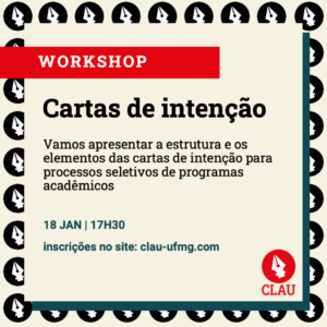 O Centro de Letramento Acadêmico Universitário (CLAU), projeto de ensino da Faculdade de Letras da UFMG coordenado pela professora Mara Guimarães, está com inscrições abertas para o Workshop: Cartas de Intenção