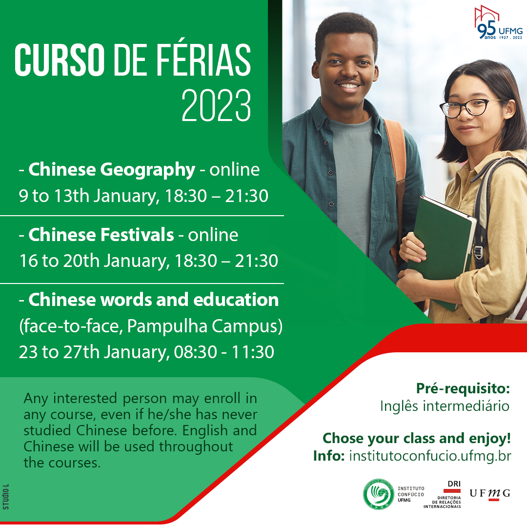 O Instituto Confúcio FALE/ UFMG oferta curso de férias para os interessados na cultura chinesa e Mandarim. As atividades são abertas à comunidade interna e externa da universidade e é possível realizar inscrição entre os dias 23/12/2022 e 05/01/2023.