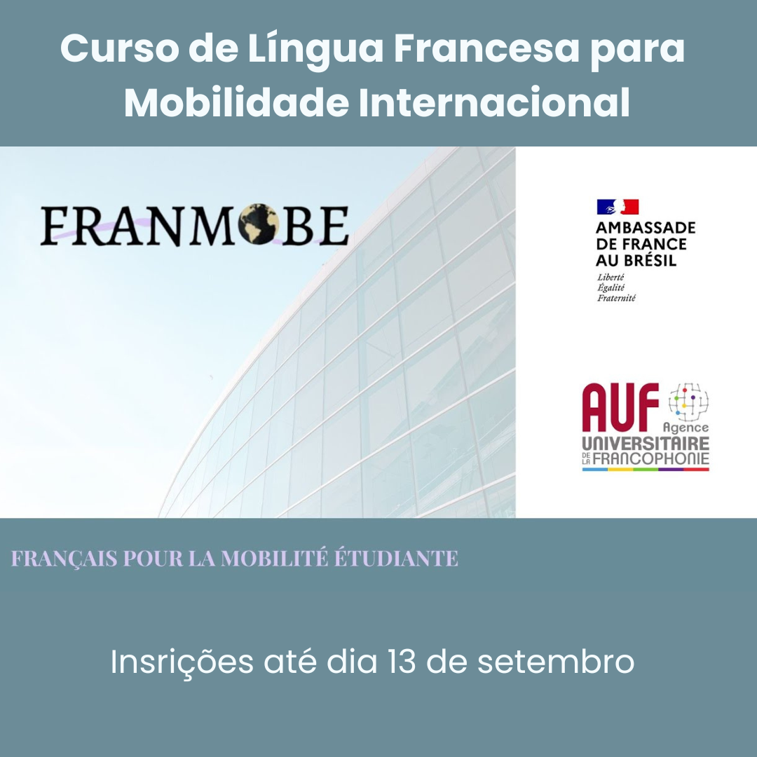 A Faculdade de Letras (FALE), com apoio da Diretoria de Relações Internacionais (DRI) da Universidade Federal de Minas Gerais (UFMG) e a Embaixada da França no Brasil, informa que estão abertas as inscrições para o Curso de Língua Francesa para Mobilidade Internacional – FRANMOBE.