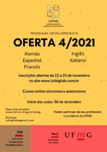 As inscrições acontecem entre os dias 22 a 25 de novembro, no site da iUFMG FALE. O início das aulas será em 06 de dezembro.