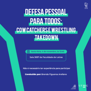 Na sexta-feira, dia 4 de novembro, Brenda Arellano, assistente de ensino de língua inglesa Fulbright (English Teaching Assistants – ETAs), promove aulas de defesa pessoal para todos com a temática “Raspagens de guarda fechada e meia guarda”.