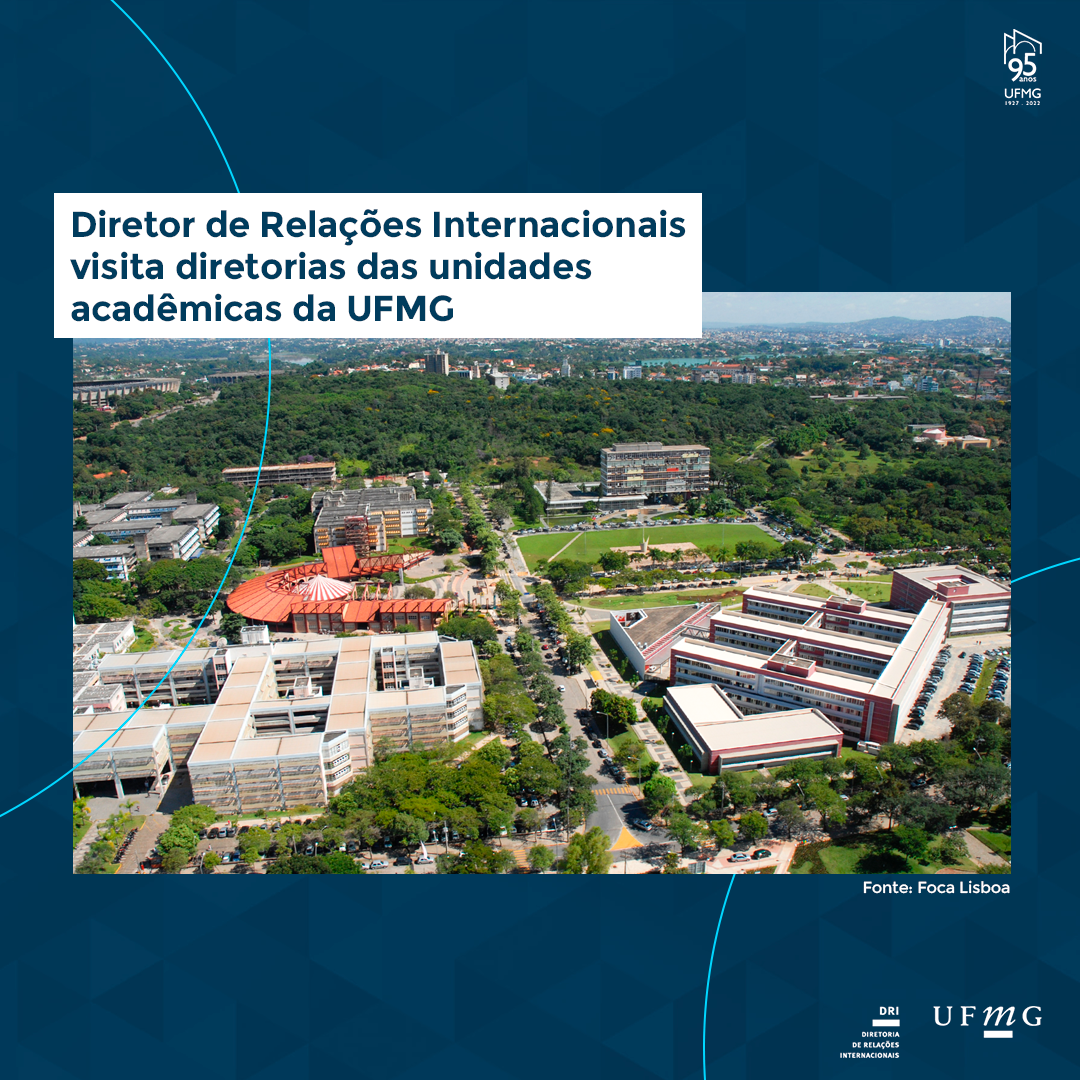 Neste segundo semestre de 2022, o Diretor de Relações Internacionais da Universidade Federal de Minas Gerais, professor Aziz Tuffi Saliba, visita as unidades acadêmicas da UFMG e suas diretorias com o objetivo de divulgar as ações institucionais  voltadas às políticas internacionalização, à cooperação, por meio de convênios e parcerias, entre a UFMG com outras instituições de ensino superior, de pesquisa ou de fomento, sediadas em outros países ou que tenham atuação internacional,  além de apresentar nossas  redes de cooperação, que até o momento somam dez redes interuniversitárias internacionais.