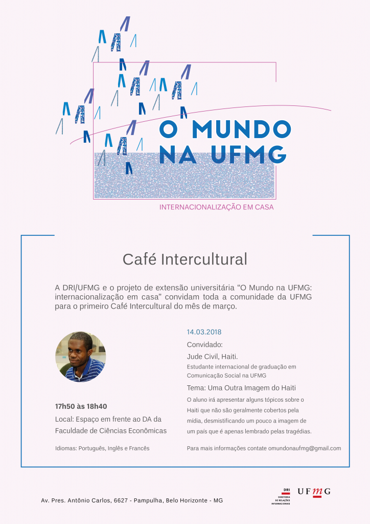 Para essa edição, Jude Civil, que é estudante internacional de graduação em Comunicação Social na UFMG, abordará o tema “Uma outra imagem do Haiti”, apresentando tópicos sobre o país que vão em diferentes direções em relação ao que é apresentado pela mídia massiva.
