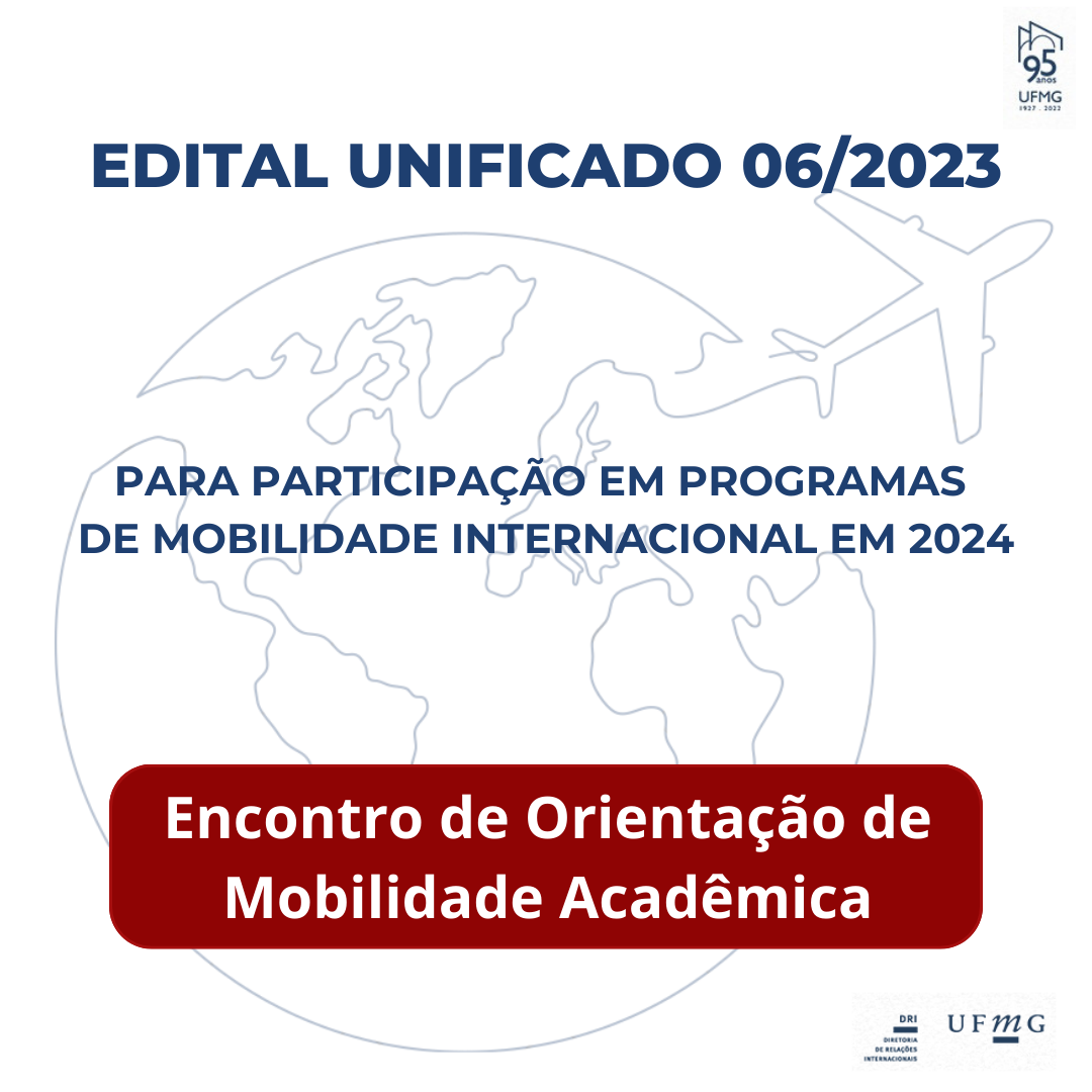 A Diretoria de Relações Internacionais (DRI) convida os alunos alocados e habilitados no âmbito do Edital 06/2023 para o Encontro de Orientação sobre as mobilidades que ocorrerão em 2024. O evento é de FUNDAMENTAL importância para os estudantes alocados e também para aqueles habilitados que têm expectativa de serem alocados nas próximas rodadas.