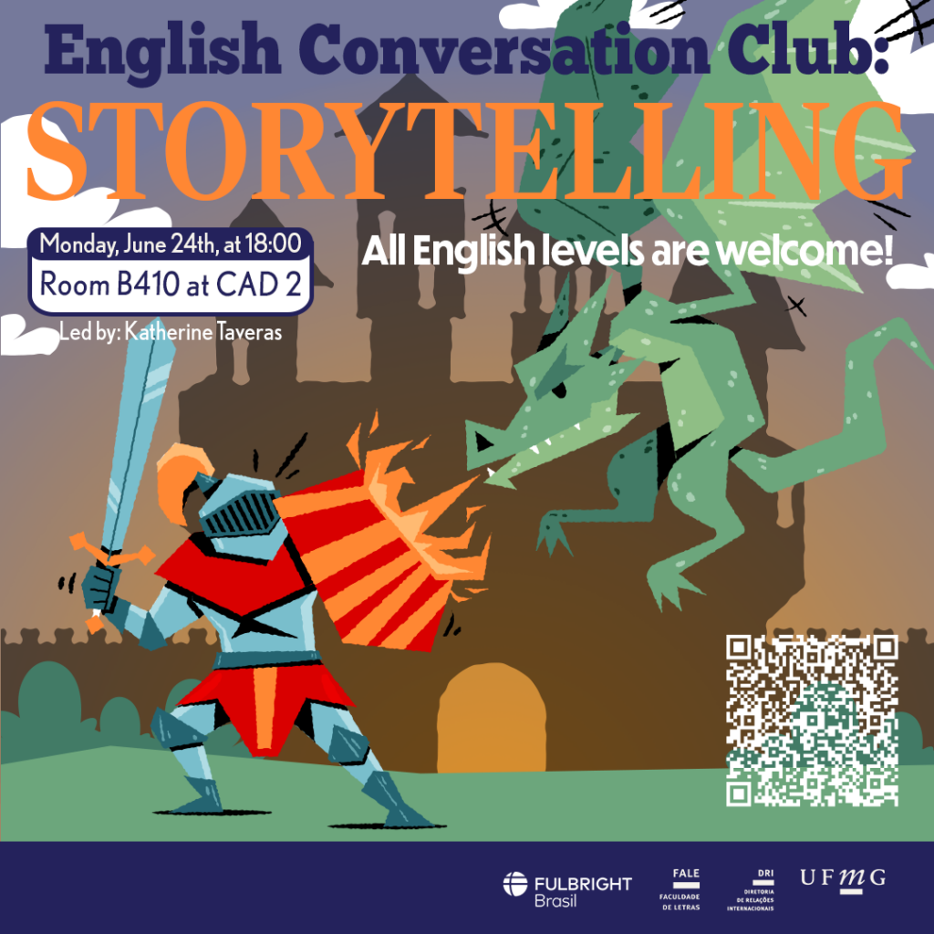 Neste encontro, com o tema “Storytelling”, os participantes poderão melhorar a sua fluência em língua inglesa por meio da prática de contar e desenvolver histórias.