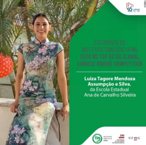 Luiza Tagore Mendoza Assumpção e Silva, estudante da Escola Estadual Ana de Carvalho Silveira e do curso de Mandarim do Instituto Confúcio da Universidade Federal de Minas Gerais (UFMG), está no Top 50 da Global Chinese Bridge Competition 2022 para estudantes do Ensino Médio.