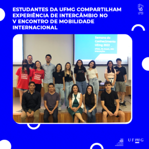 Na última quarta-feira, dia 19, aconteceu o V Encontro de Mobilidade Internacional da Universidade Federal de Minas Gerais (UFMG), realizado pela Diretoria de Relações Internacionais (DRI). O evento contou com a participação dos estudantes da UFMG que experienciaram mobilidade internacional e estudantes internacionais em mobilidade na UFMG. O evento faz parte da programação da Semana do Conhecimento, em que são reunidos trabalhos das áreas de ensino, pesquisa e extensão produzidos por discentes, docentes e servidores técnico-administrativos da UFMG.