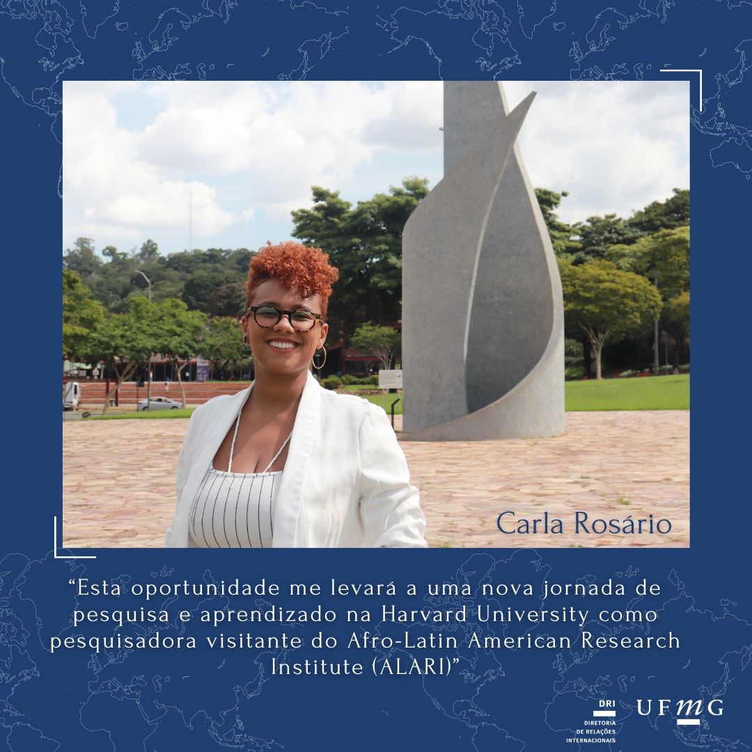 Carla Rosário foi selecionada como bolsista do programa Doctoral Dissertation Research Award da Fulbright-Brasil para o período 2024-2025 e pontua que “esta oportunidade me levará a uma nova jornada de pesquisa e aprendizado na Harvard University como pesquisadora visitante do Afro-Latin American Research Institute (ALARI)”, além de  trazer novos insights para sua pesquisa no Departamento de Ciência Política da Universidade Federal de Minas Gerais (UFMG).