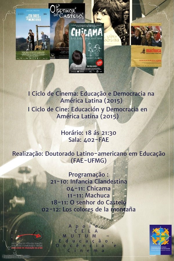 O evento é uma iniciativa do Doutorado Latino-americano em Educação: Políticas Públicas e Profissão Docente. Os encontros são quinzenais, entre os dias 21 de Outubro e 02 de dezembro de 2015, de 18 as 21h30, na sala 402 da Faculdade Educação (campus Pampulha). A entrada é franca.