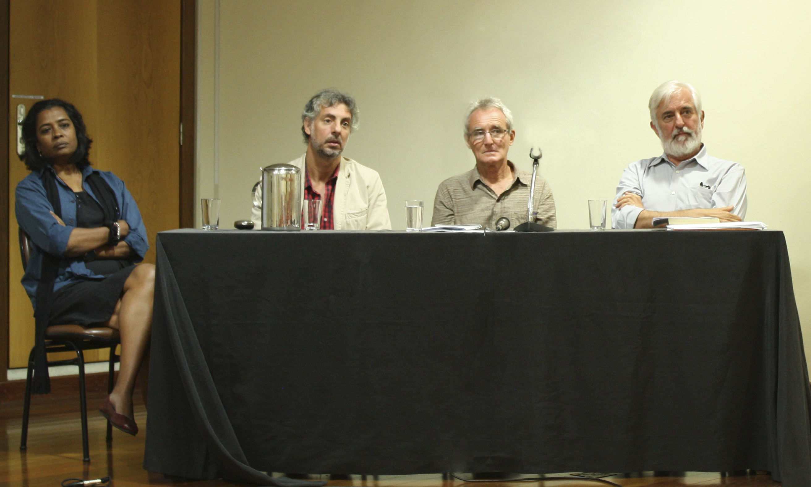 Da esquerda para a direita: Sra. Milena Smith, Embaixadora da Eslovênia no Brasil, Prof. Clélio Campolina, Reitor da UFMG, Sra. Ana Paula Zacarias, Embaixadora da União Europeia no Brasil e Prof. Ivan Domingues, Coordenador do Centro de Estudos Europeus