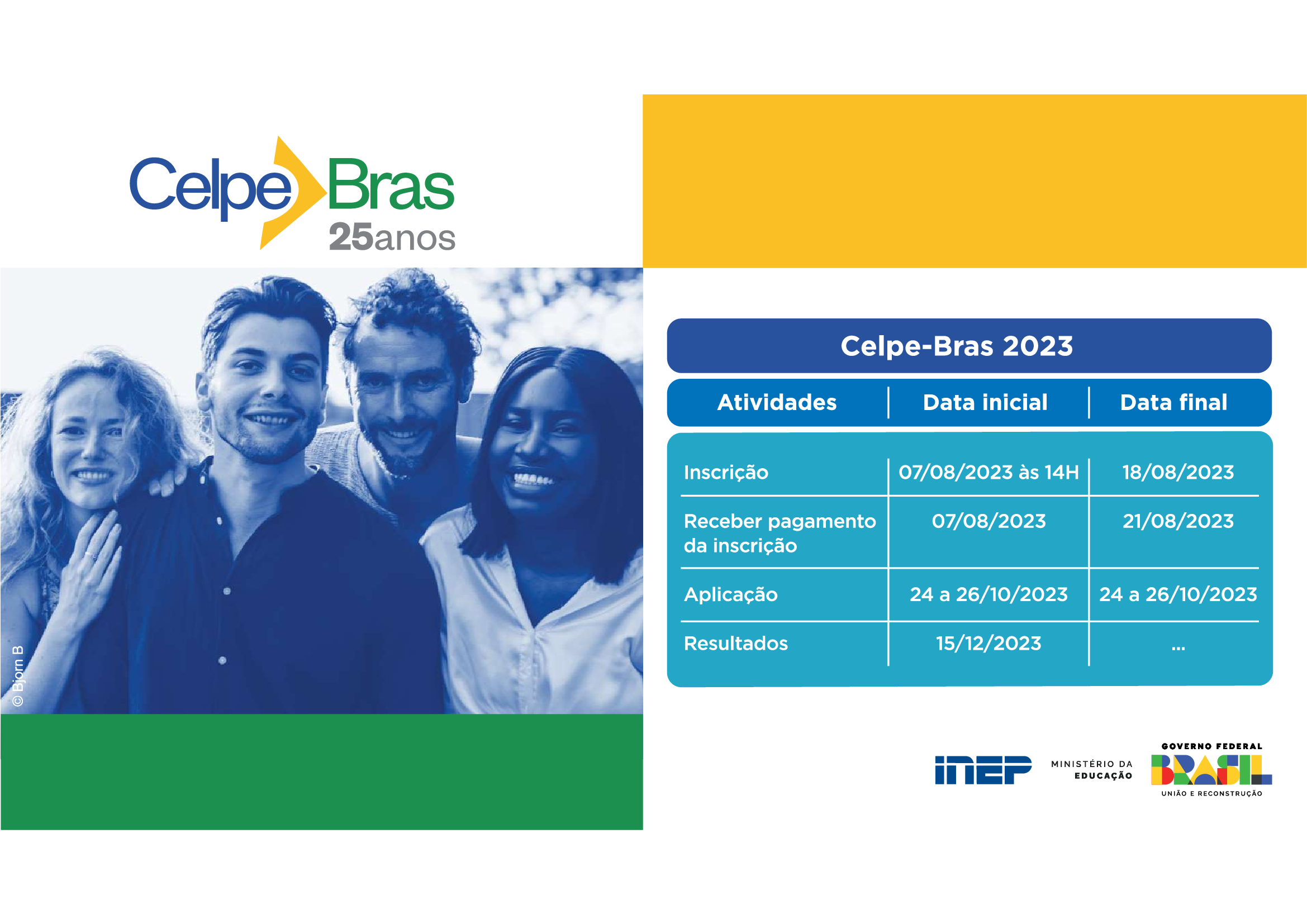 O Setor de Proficiência Linguística da Diretoria de Relações Internacionais (DRI) da Universidade Federal de Minas Gerais (UFMG) informa que as inscrições para o Celpe-Bras estarão abertas entre os dias 07 e 18 de agosto de 2023.
