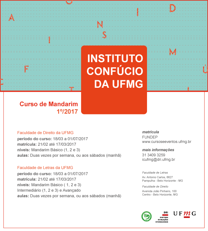 Mais informações podem ser adquiridas através do e-mail icufmg@dri.ufmg.br ou pelo telefone do Instituto Confúcio da UFMG (31) 3409-3259.