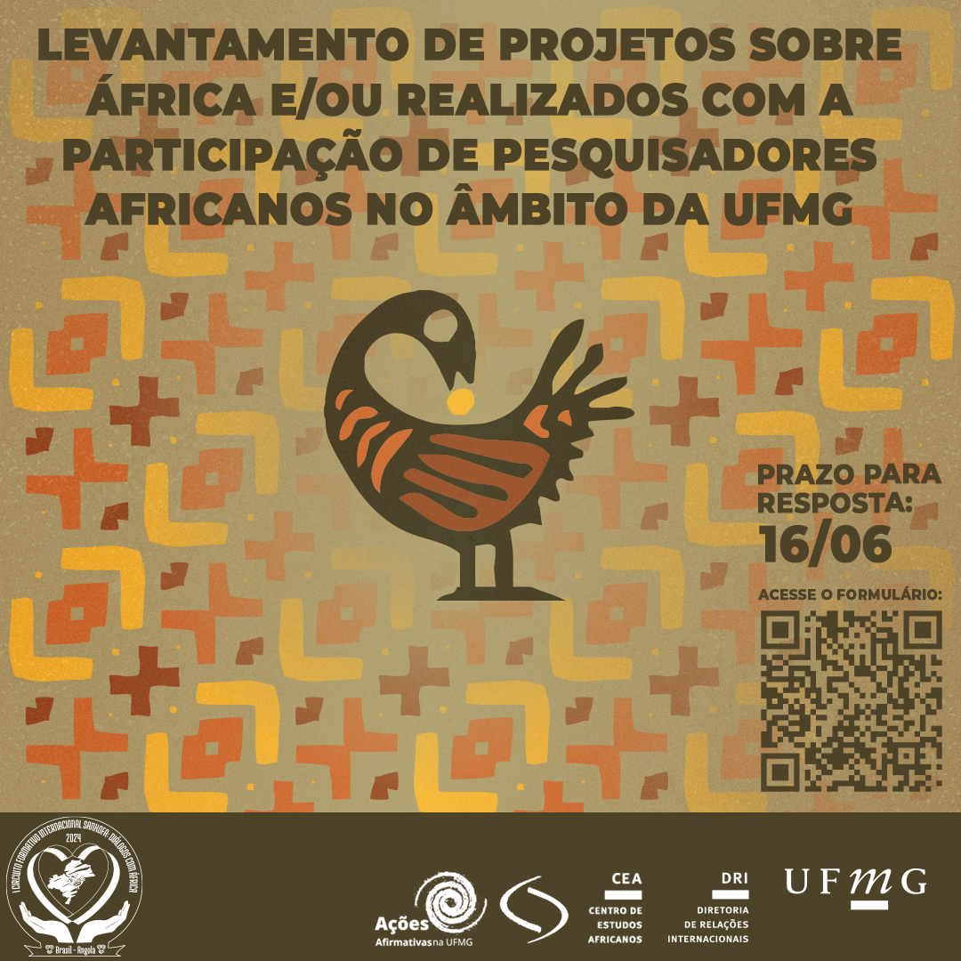 Em comemoração ao dia da África, 25 de maio, e aos 10 anos do Centro de Estudos Africanos (CEA) na UFMG, está sendo realizado um amplo levantamento para identificar pesquisadores e projetos de pesquisa, ensino e/ou extensão sobre África e/ou realizados com a participação de pesquisadores africanos no âmbito da UFMG.