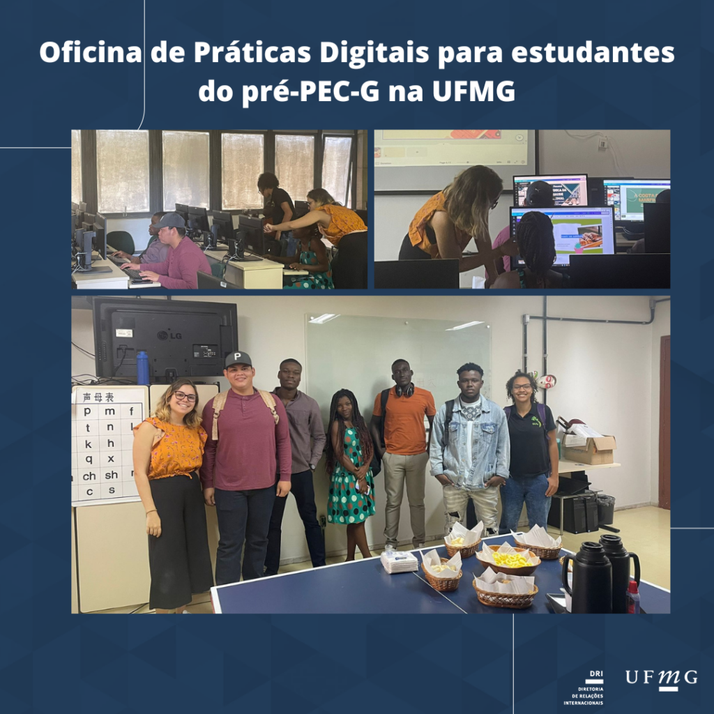 O Setor de Acolhimento da Diretoria de Relações Internacionais da UFMG (DRI/UFMG) promoveu no último dia 15 de junho de 2023 a Oficina de Práticas Digitais voltada para os estudantes do pré-PEC-G, no Laboratório de Informática da Faculdade de Letras da UFMG.