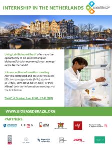 Acontecerá, no dia 4 de outubro, às 12h, uma palestra informativa para estudantes interessados em fazer estágio na Holanda pelo programa Living Lab Biobased.