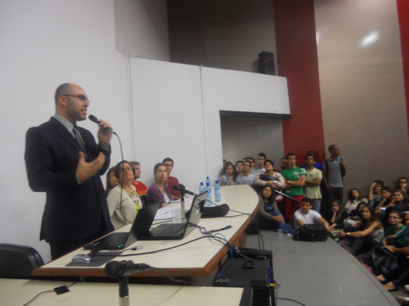 Entre vários pontos citados para o sucesso do intercambista no exterior, estavam a tolerância cultural, o comportamento e a flexibilidade para o bom relacionamento com as pessoas do país e a busca de oportunidades para se aprender a nova língua e construir conhecimentos em um novo idioma. Avram Stanley apresentou as ações do Projeto Inglês sem Fronteiras, que credencia universidades públicas como centro aplicador de provas de proficiência, promove cursos a distância _My English On-line_ e cursos presenciais do Núcleo de Línguas (NucLi), visando difundir a língua inglesa entre os alunos das universidades.Ao final da palestra foi aberto um espaço para perguntas.