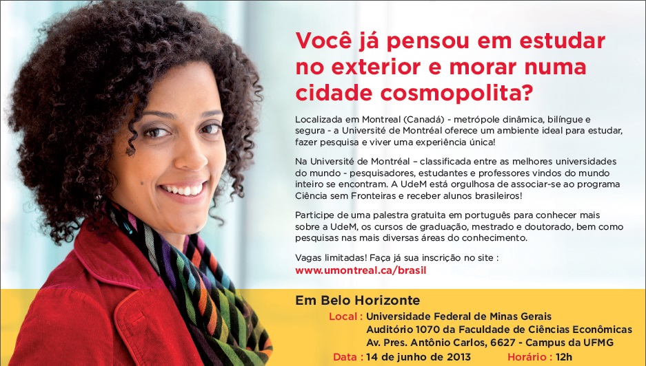 Vagas Limitadas! Faça já sua inscrição: http://www.futursetudiants.umontreal.ca/brasil/palestras.html