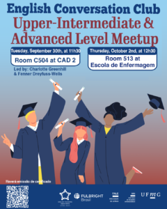 Upper-Intermediate & Advanced Level Meetup, dia 02/10, das 12h30 às 14h, na sala 513 na Escola de Enfermagem