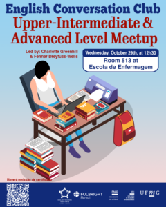 Upper-Intermediate & Advanced Level Meetup, dia 29/10, das 12h30 às 14h, na sala 513 na Escola de Enfermagem