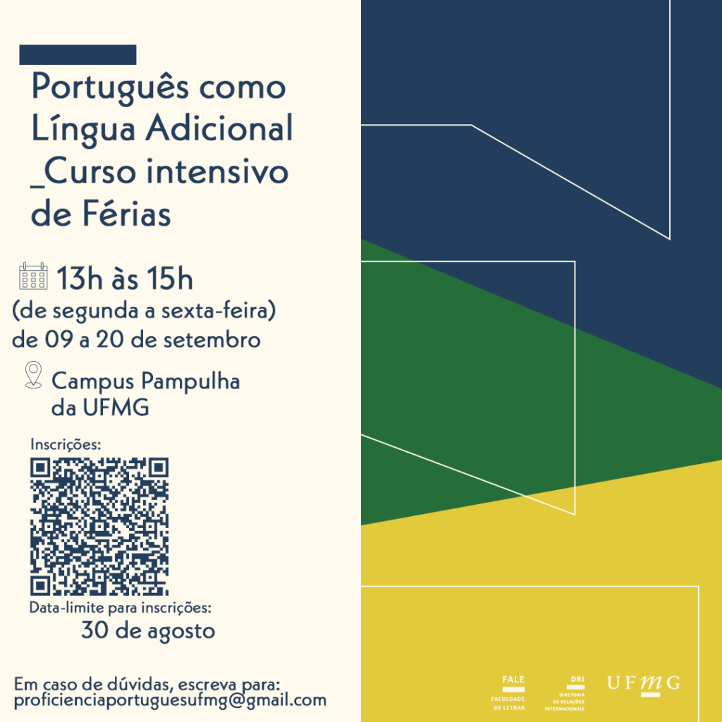 The Language Proficiency Department of the Office of International Affairs at UFMG announces that registration is now open for the intensive holiday course in Portuguese as an Additional Language – basic level, to be offered from September 9 to 20, 2024.