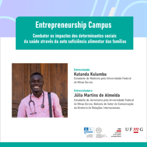 Kutanda, que originalmente é da Angola, ingressou na UFMG em 2018 por meio do programa PEC-G, e atualmente está participando da Entrepreneurship Campus, competição internacional nos moldes da Unesco para projetos de educação para o desenvolvimento sustentável.