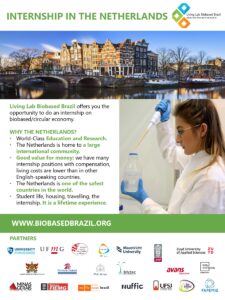 Estudantes de graduação poderão se candidatar para oportunidades de estágio na Holanda, ofertadas pelo projeto Living Lab Biobased Brazil, que oferece programas de estágio para estudantes brasileiros em várias universidades holandesas.