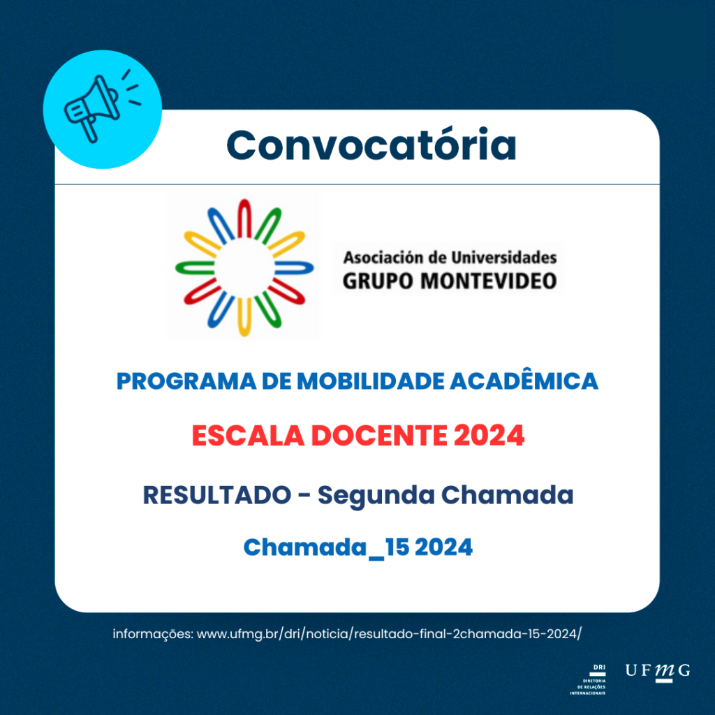 A Diretoria de Relações Internacionais (DRI) torna público a lista com o resultado final referente a Segunda Chamada 15_2024 do Programa Escala Docente AUGM.